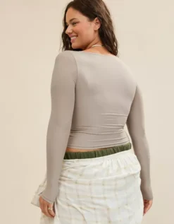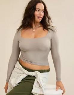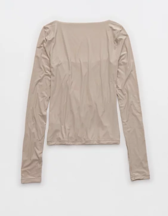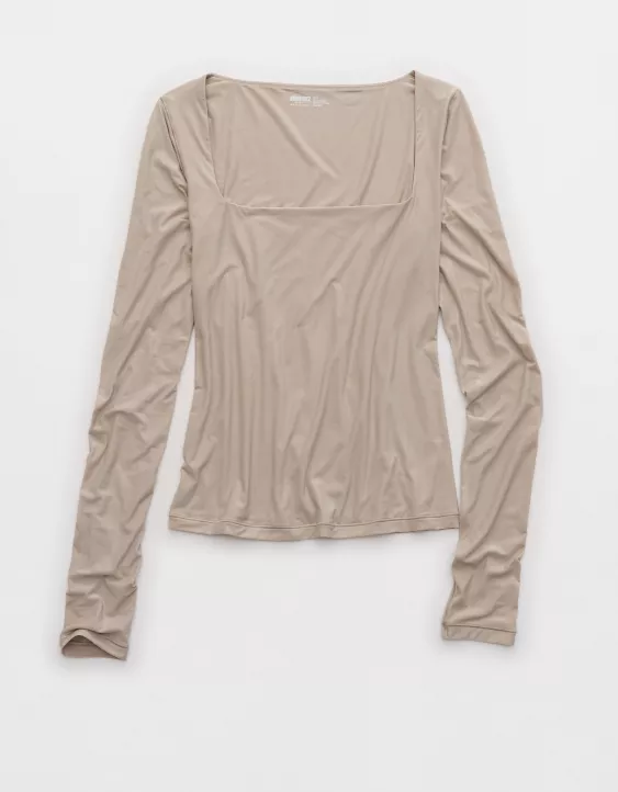Aerie SMOOTHEZ Square Neck Long Sleeve T-Shirt Stone Harbor