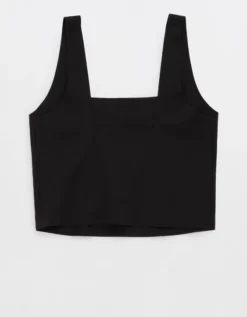 Aerie SMOOTHEZ Square Neck Tank Top True Black