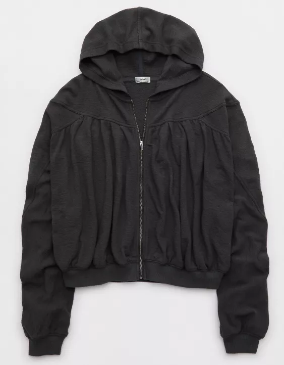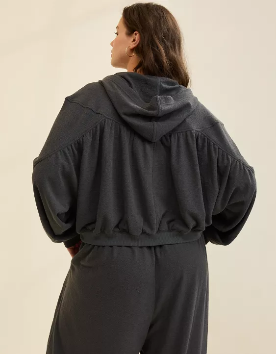 Aerie Soft Life Full Zip Sweatshirt Smoked Gray