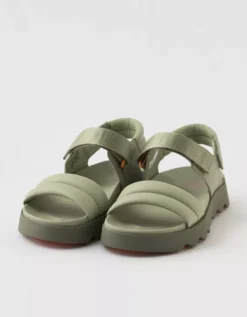 Unique puff detailing and adjustable straps add to the look, feel and functionality of this modern sandal.