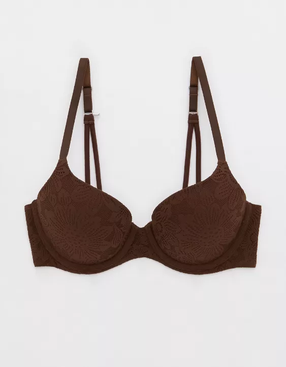 Aerie Sunnie Bloom Lace Demi Push Up Bra Canyon Sun
