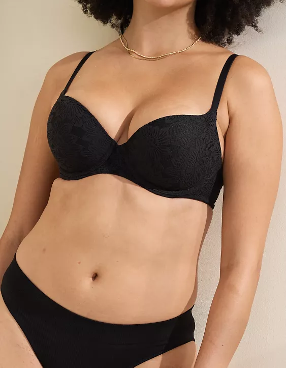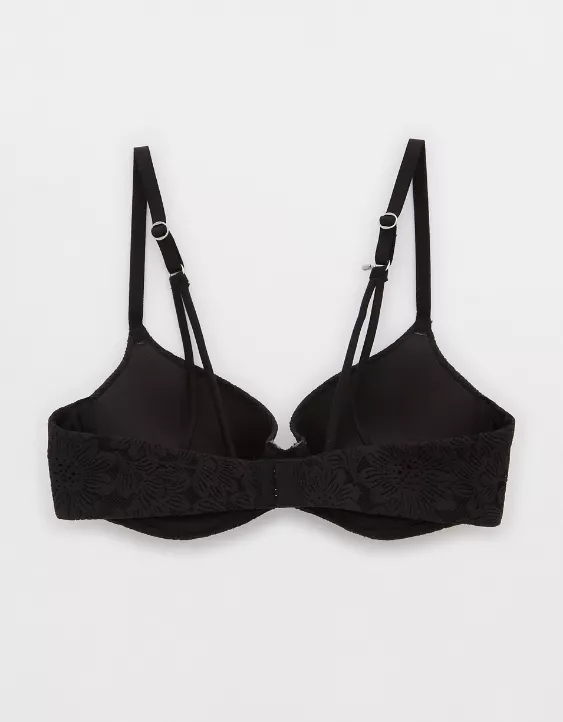 Aerie Sunnie Bloom Lace Demi Push Up Bra True Black