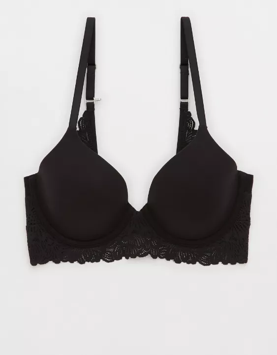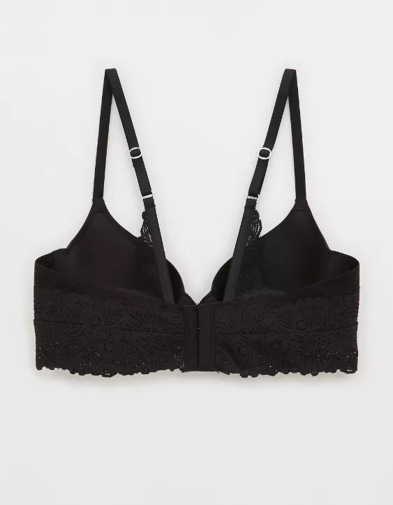 Aerie Sunnie Bloom Lace Full Coverage Lightly Lined Bra True Black