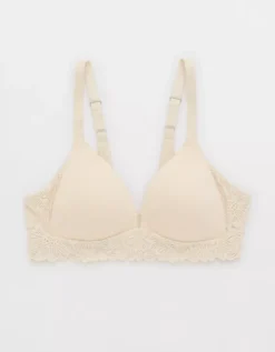 Aerie Sunnie Bloom Lace Wireless Lightly Lined Bra Vintage Vanilla