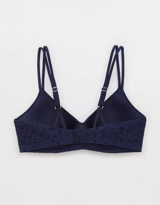 Aerie Sunnie Bloom Lace Wireless Push Up Bra Navy