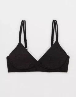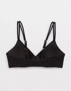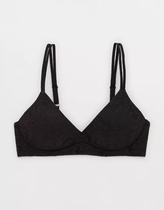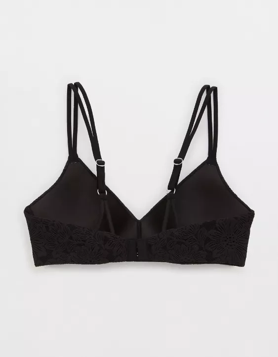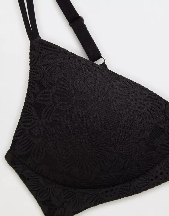Aerie Sunnie Bloom Lace Wireless Push Up Bra True Black
