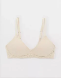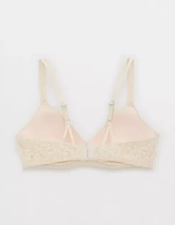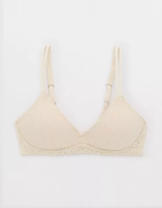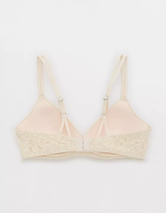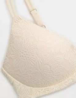 Aerie Sunnie Bloom Lace Wireless Push Up Bra Vintage Vanilla