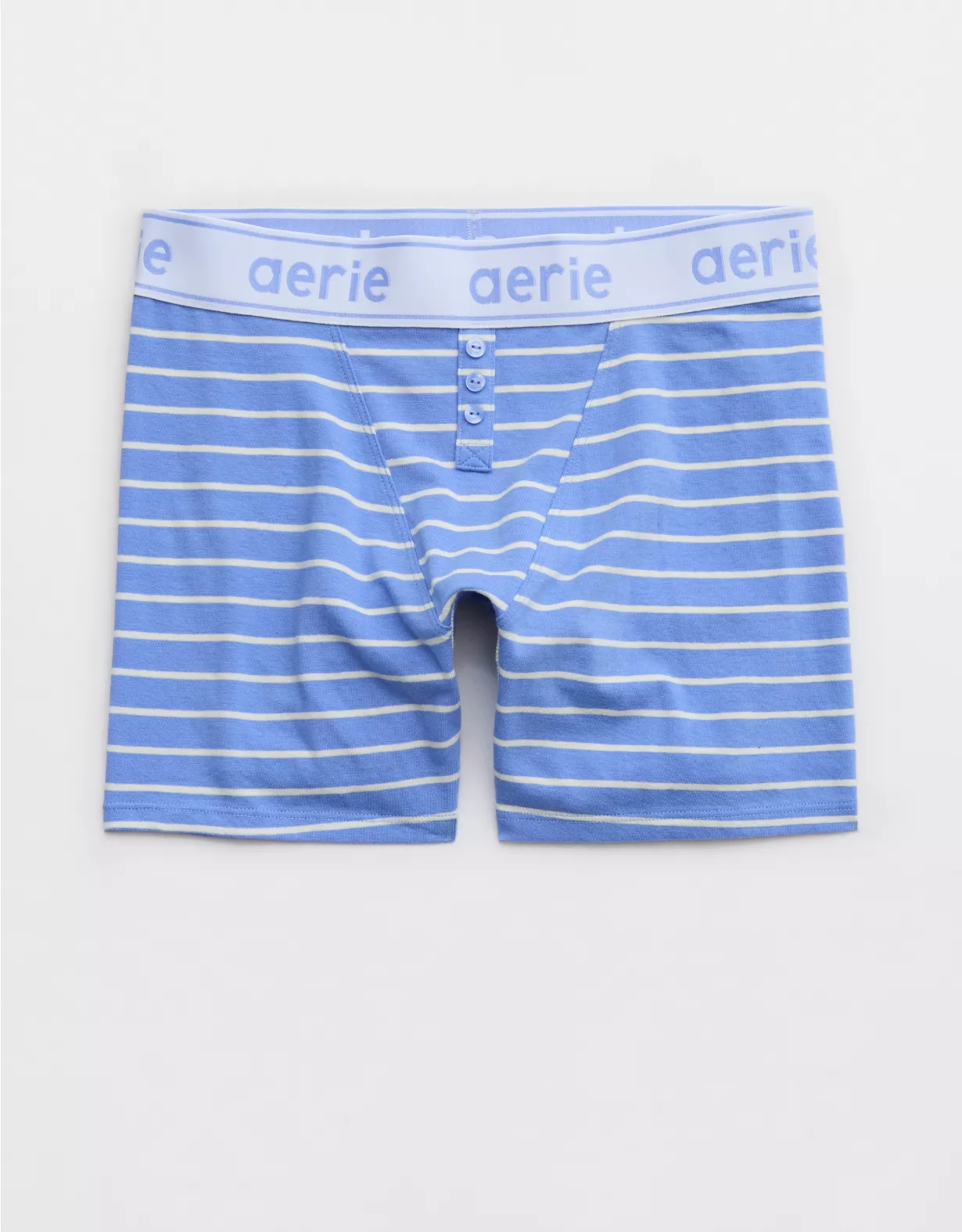 Aerie Superchill Cotton High Waisted Logo Boxer Underwear Dream Blue