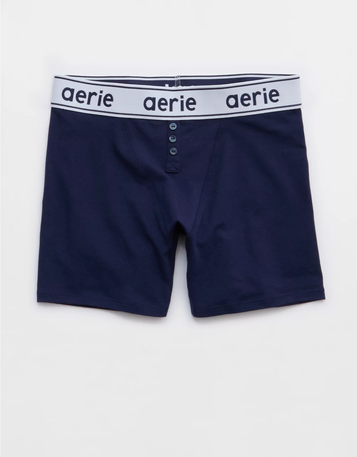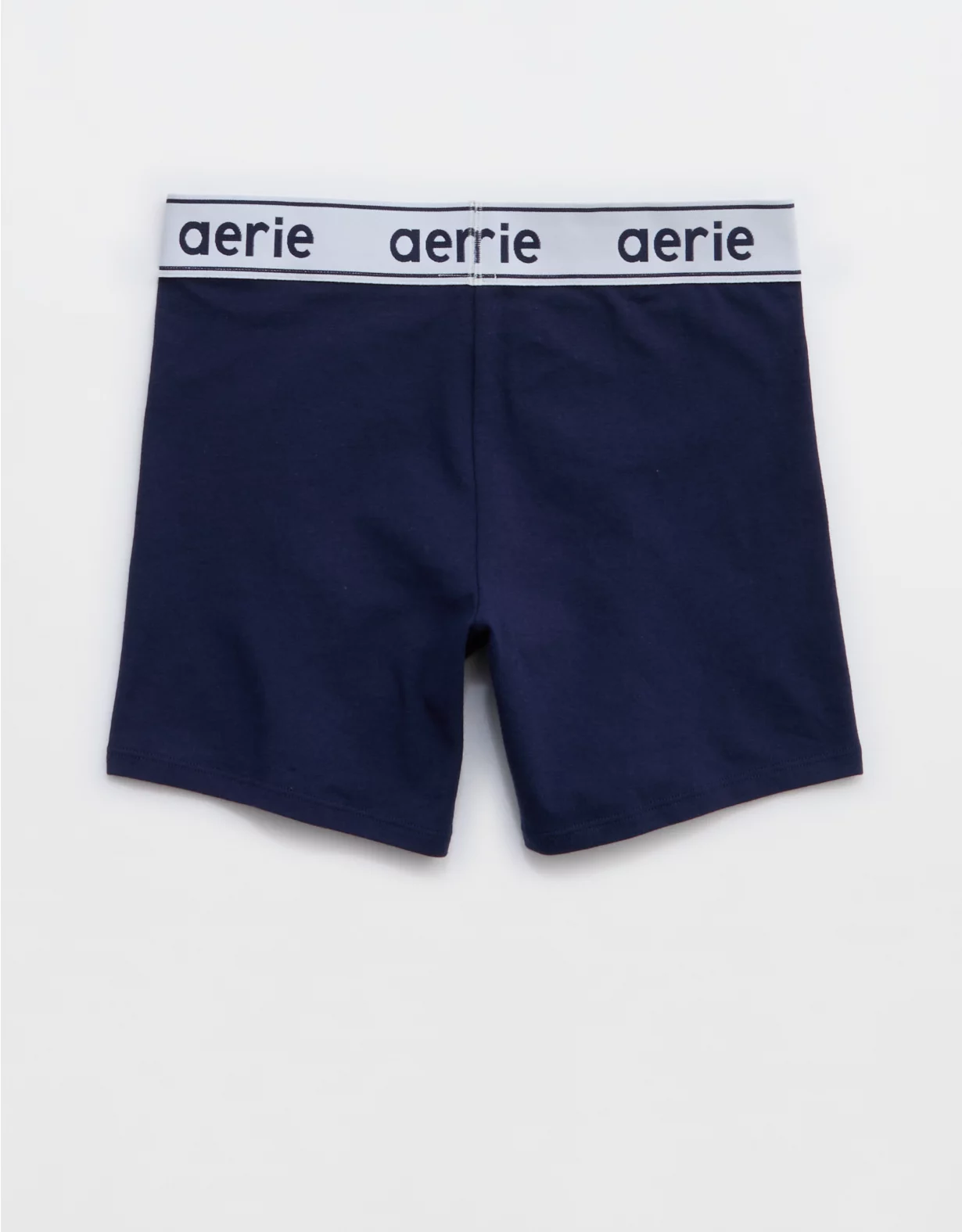 Aerie Superchill Cotton High Waisted Logo Boxer Underwear Navy