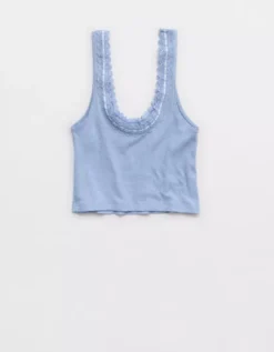 Aerie Superchill Cotton Rib Lace Tank Top Monaco Blue