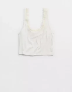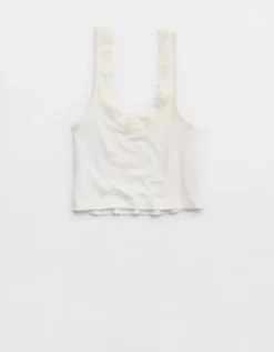 Aerie Superchill Cotton Rib Lace Tank Top Soft Muslin