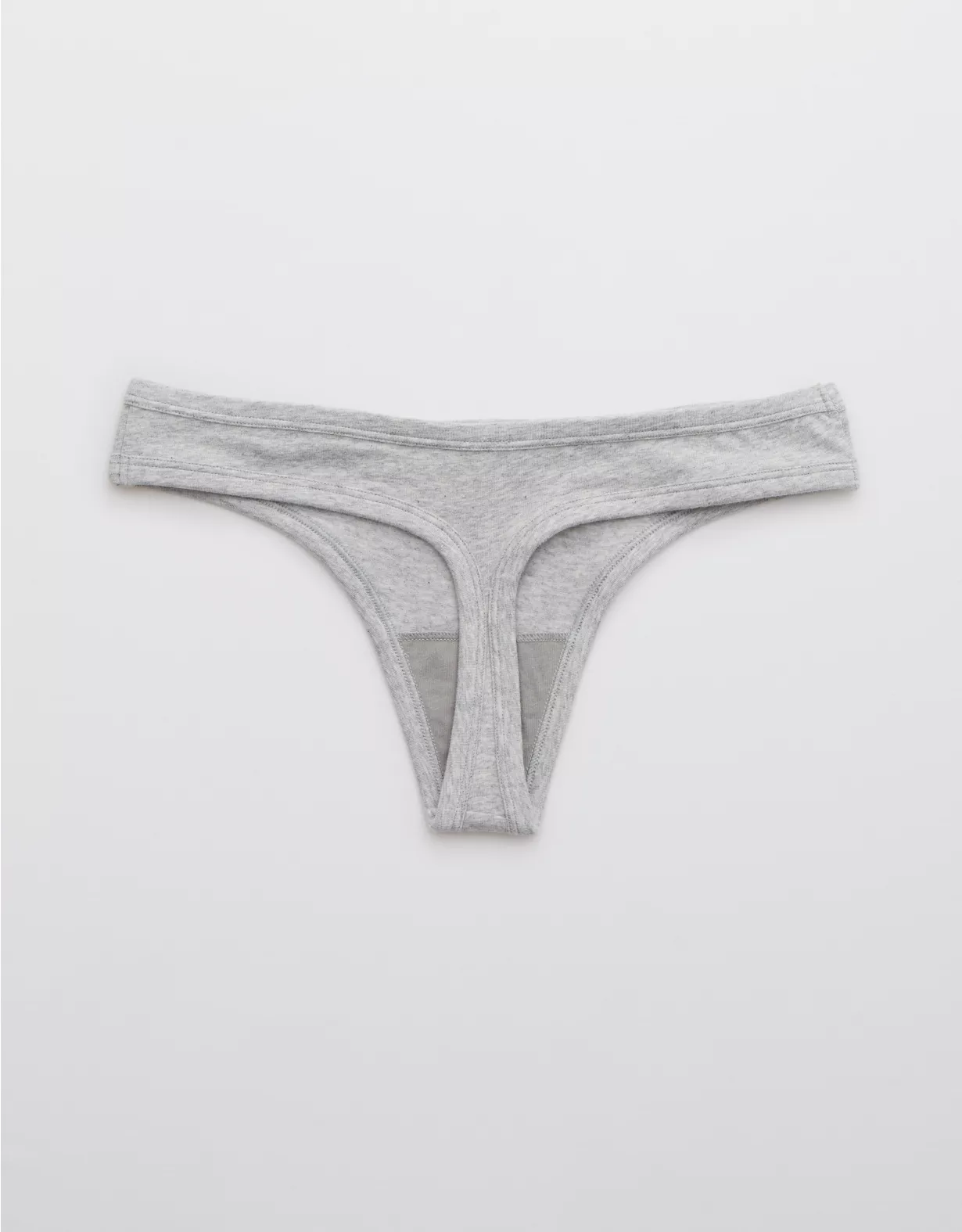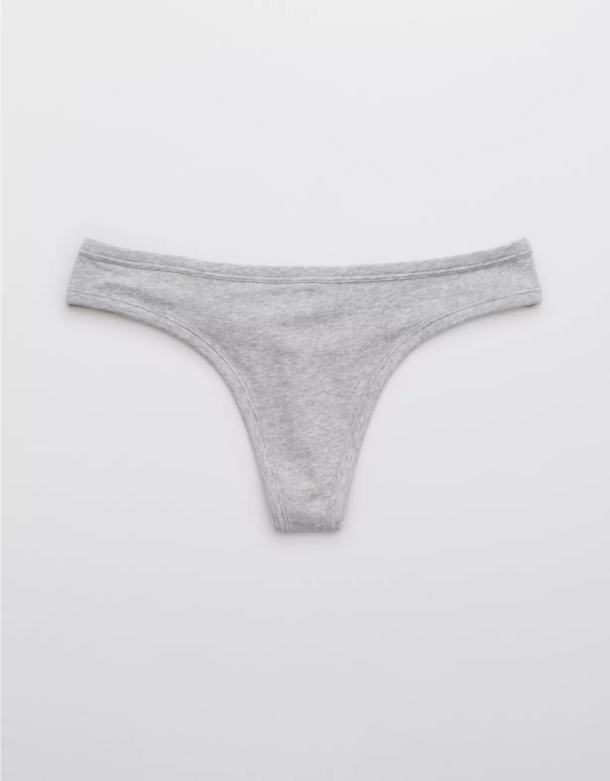 Aerie Superchill Cotton Thong Underwear Medium Heather Gray