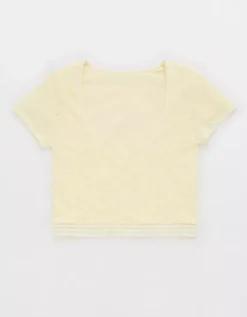 Aerie Superchill Floral Seamless T-Shirt Natural Yellow