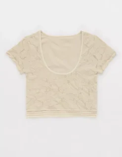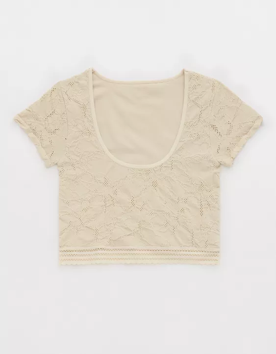 Aerie Superchill Floral Seamless T-Shirt Soft Oat
