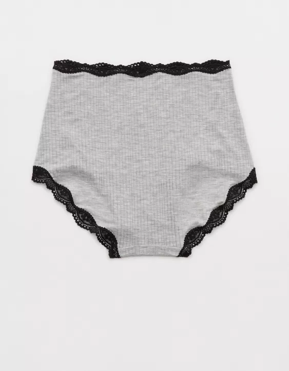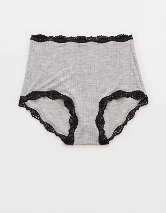 Aerie Superchill Modal Lace Super High Waisted Boybrief Underwear Medium Heather Gray