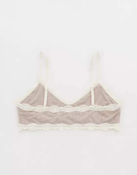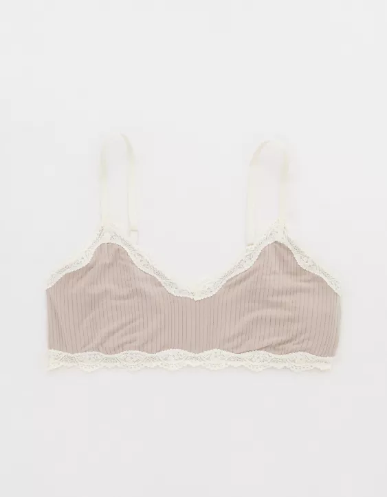 Aerie Superchill Modal Lace Trim Bralette Stone Harbor
