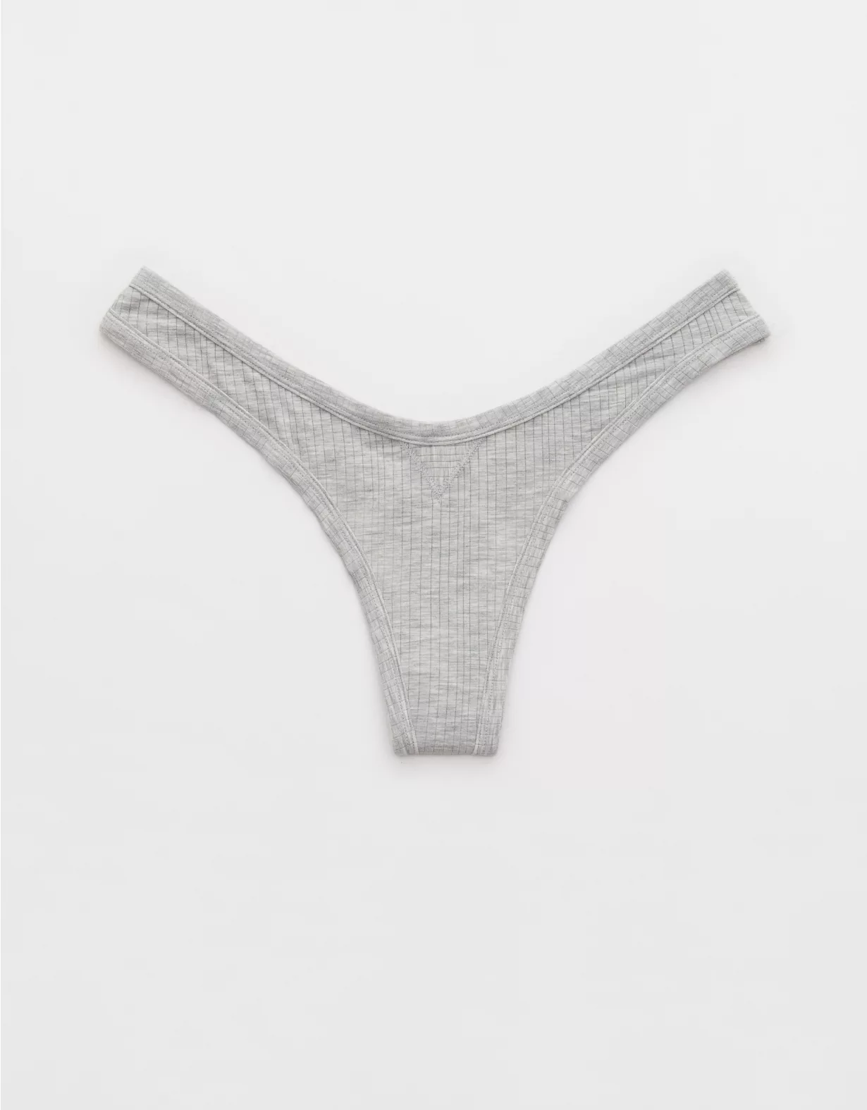 Aerie Superchill Modal Rib Thong Underwear Medium Heather Gray