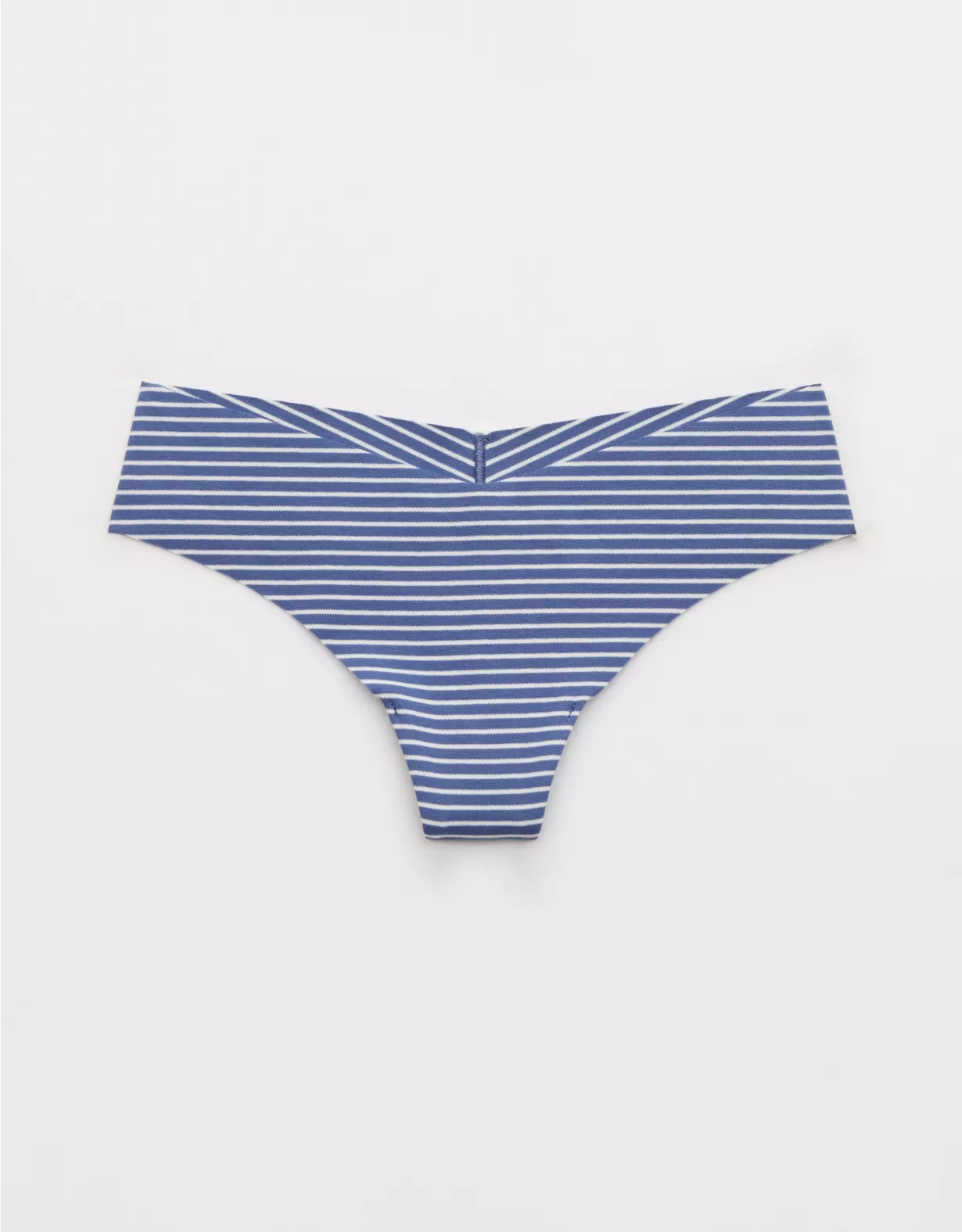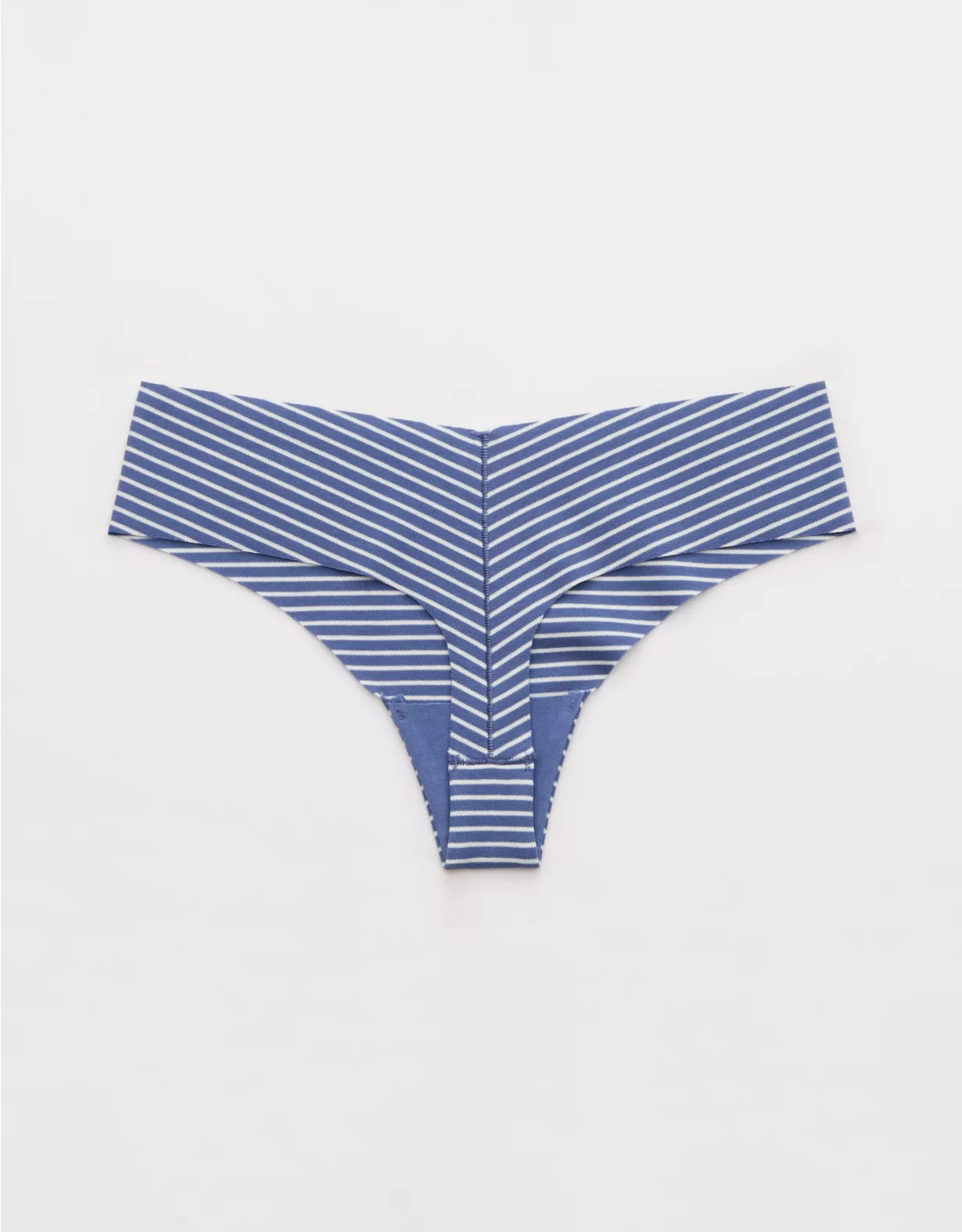 Aerie Superchill No Show Cotton Thong Underwear Marbled Blue