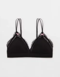 Aerie Superchill Pointelle Padded Triangle Bralette True Black