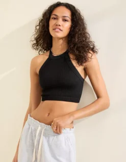 Aerie Superchill Seamless High Neck Bra Top True Black