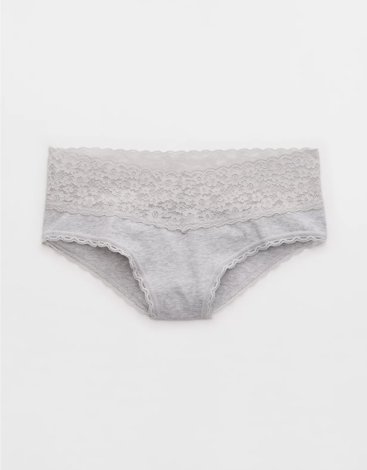 Aerie Superchill Vintage Lace Cotton Cheeky Underwear Medium Heather Gray