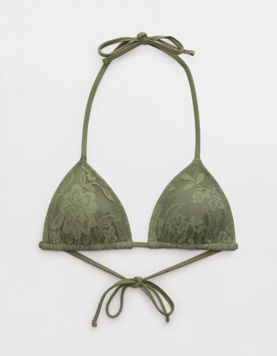 Aerie The Sun-Lover Lace Bikini Top Olive Fun