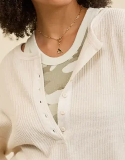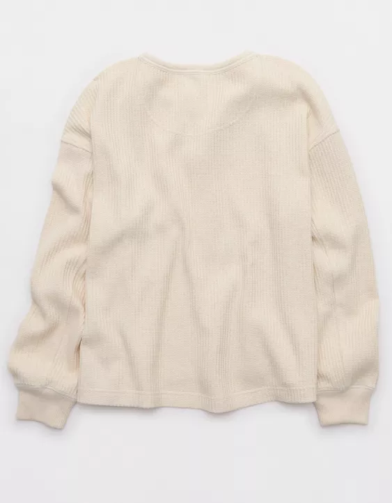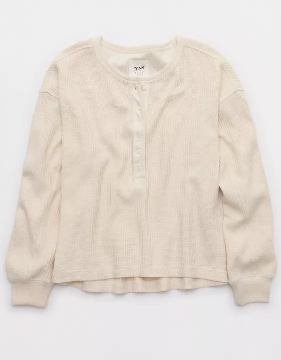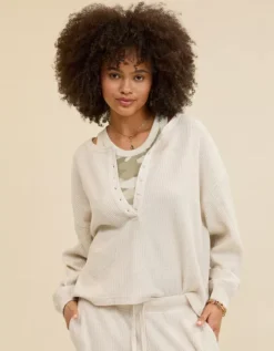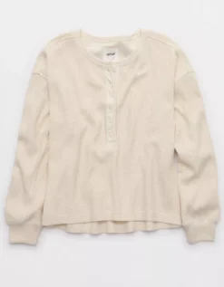 Aerie Waffle Henley Sweatshirt Heather Frost