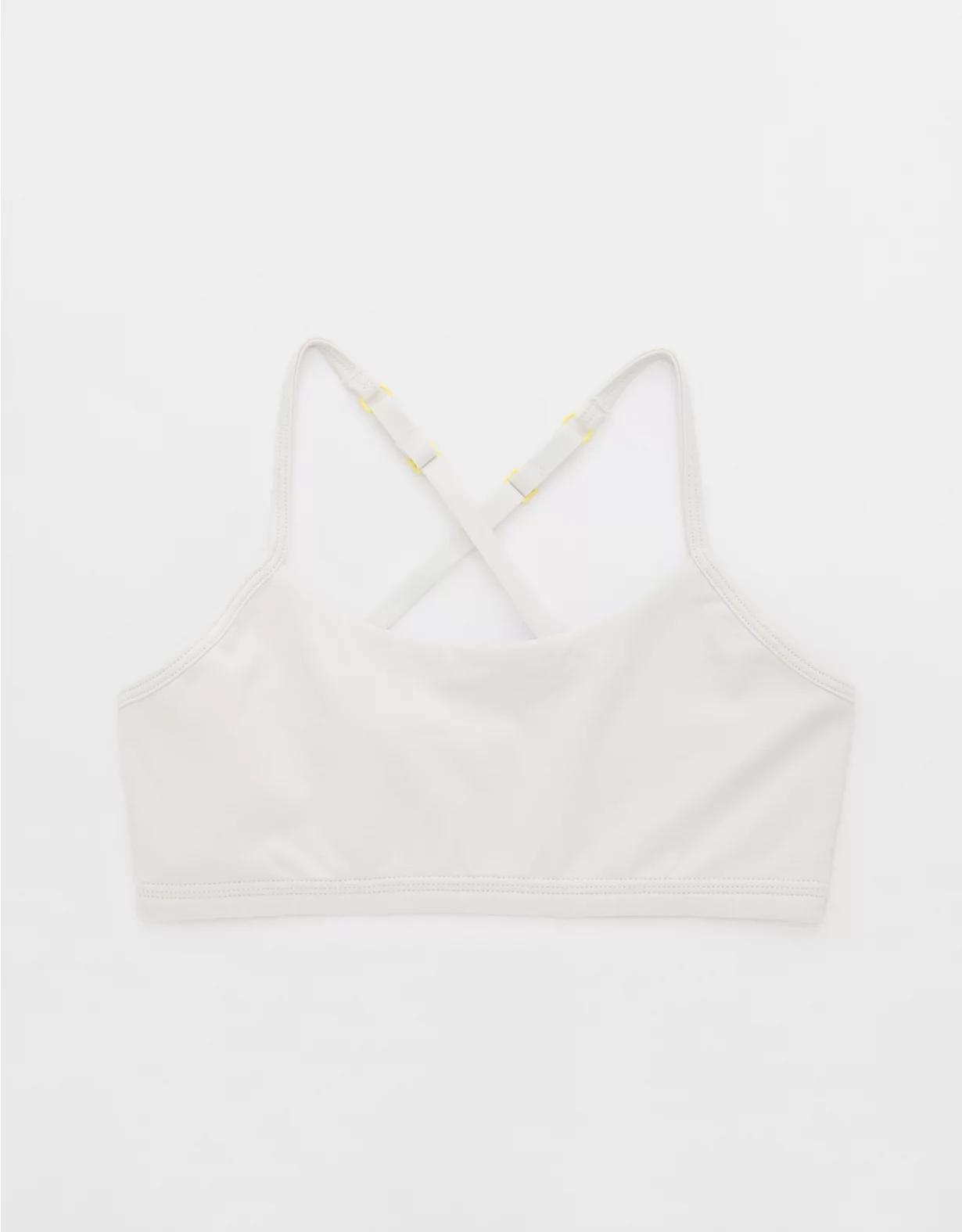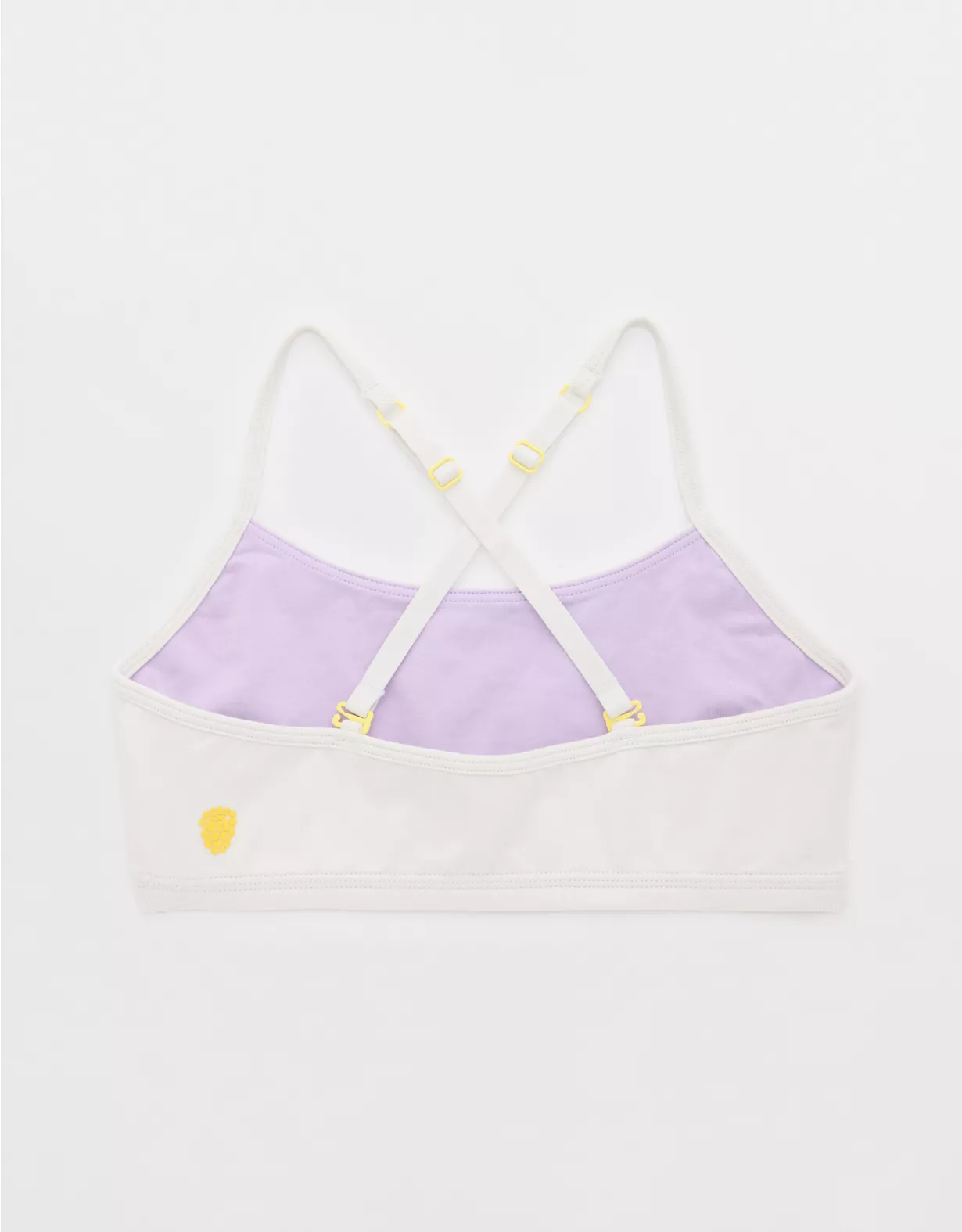 In 2015 we partnered with Yellowberry and are so excited to bring this partnership back in celebration of 10 years of Aerie Real! The Ladybug Bra offers true comfort and support for smaller sizes. Yellowberry’s bestselling Ladybug Bra is a go-to for lounging with double layered cotton & convertible, adjustable straps!