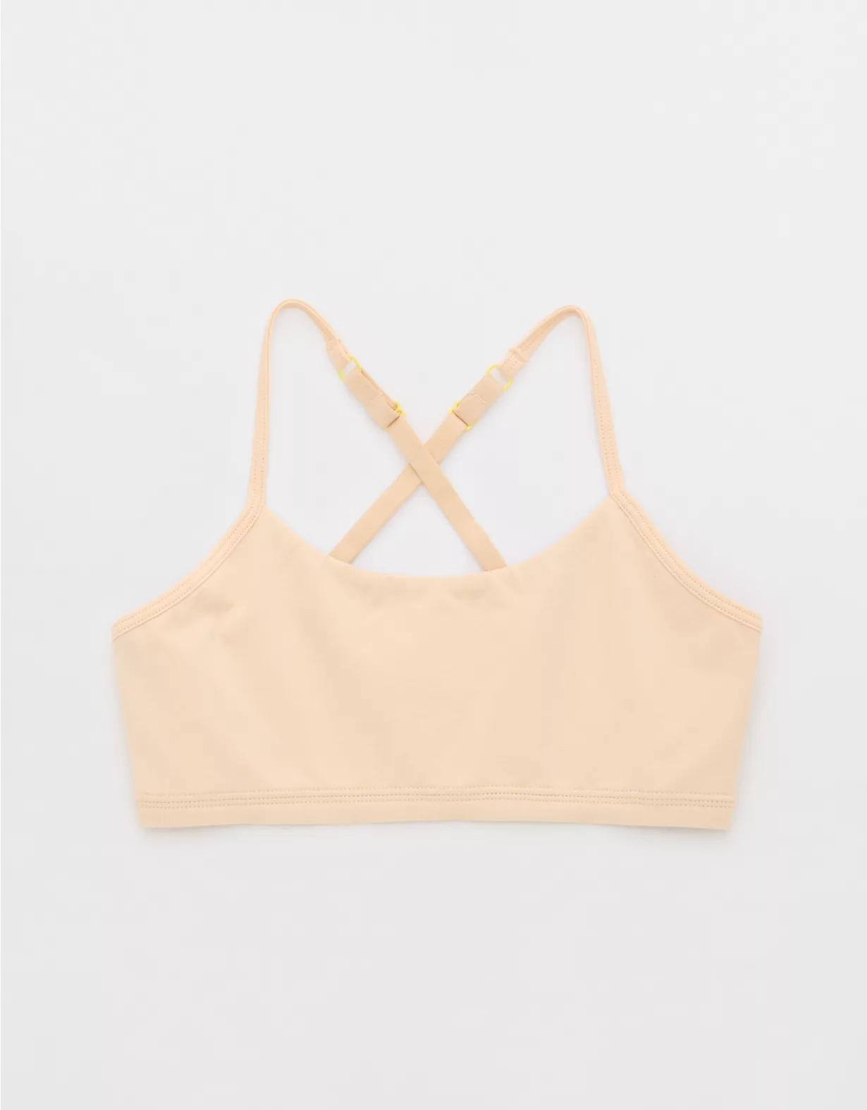 In 2015 we partnered with Yellowberry and are so excited to bring this partnership back in celebration of 10 years of Aerie Real! The Ladybug Bra offers true comfort and support for smaller sizes. Yellowberry’s bestselling Ladybug Bra is a go-to for lounging with double layered cotton & convertible, adjustable straps!