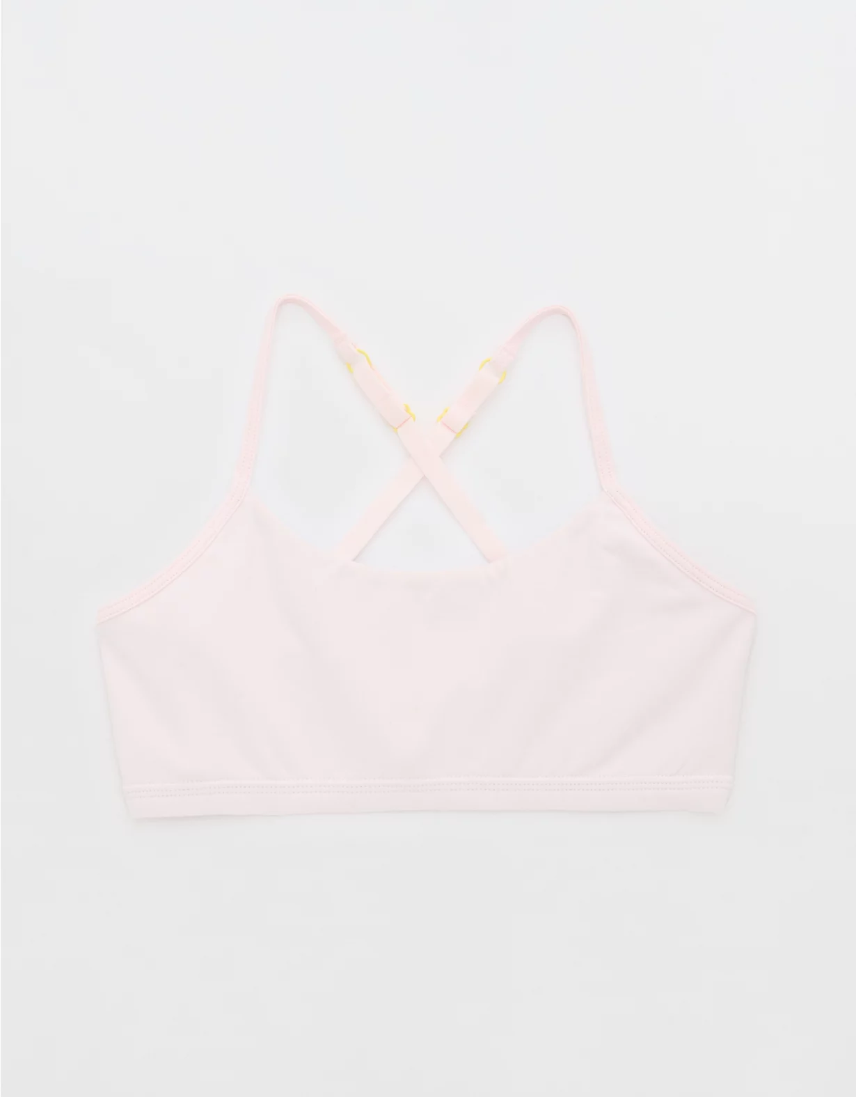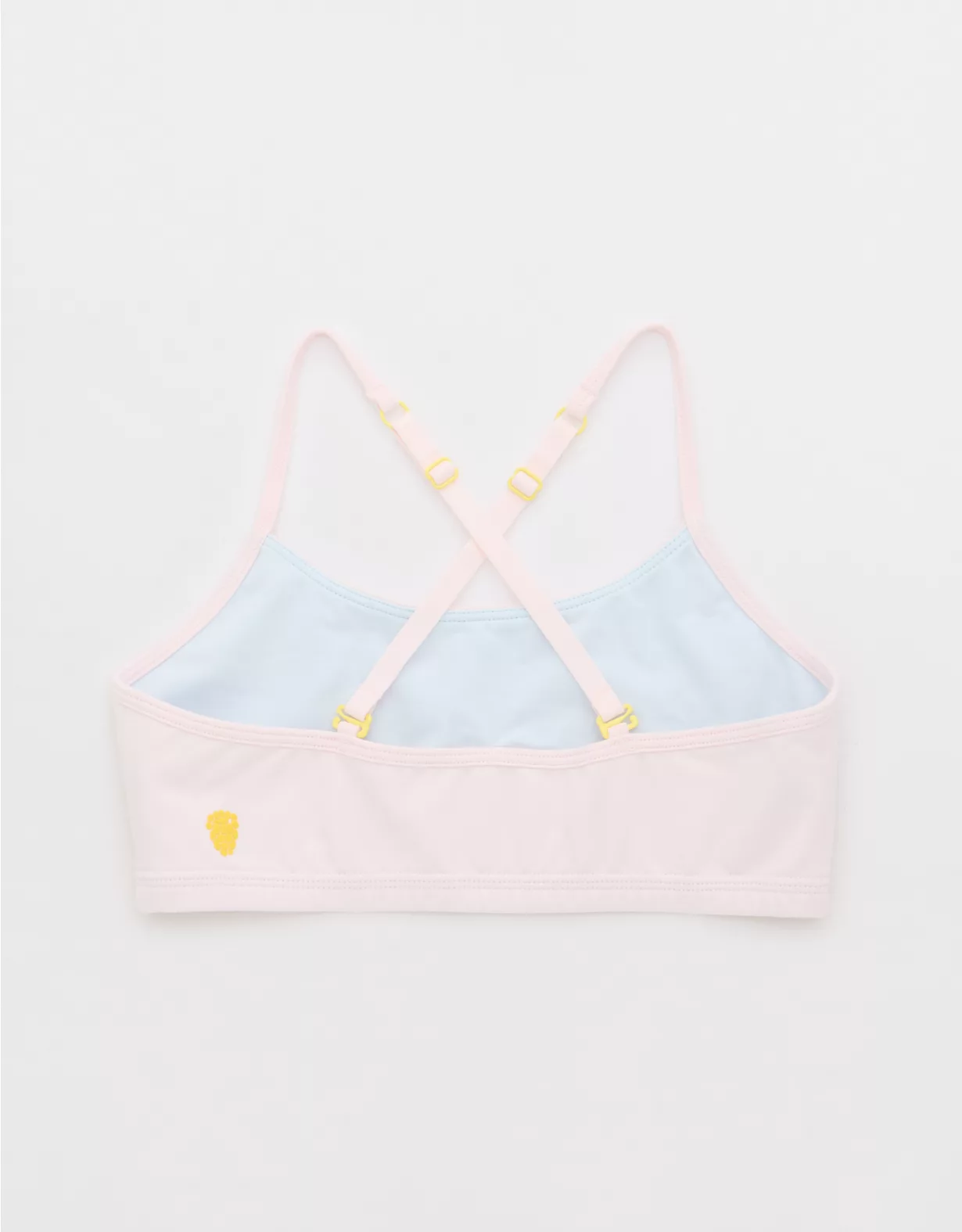 In 2015 we partnered with Yellowberry and are so excited to bring this partnership back in celebration of 10 years of Aerie Real! The Ladybug Bra offers true comfort and support for smaller sizes. Yellowberry’s bestselling Ladybug Bra is a go-to for lounging with double layered cotton & convertible, adjustable straps!