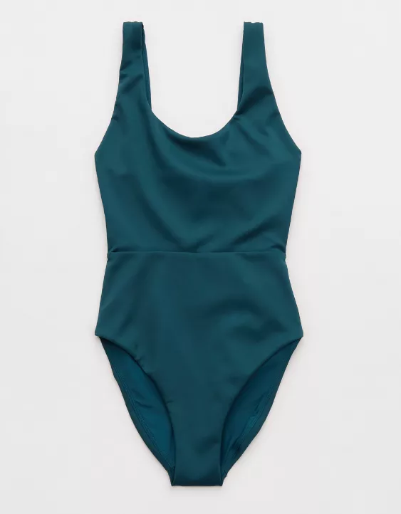 Left On Friday Double Scoop One Piece Suit Aqua Turquoise