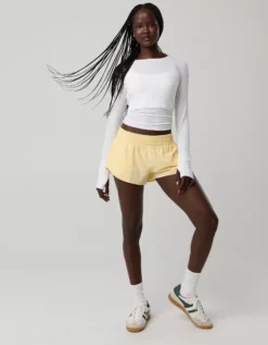 - THE FIT: Low rise with a 2″ inseam. Real Me shortie underneath.
