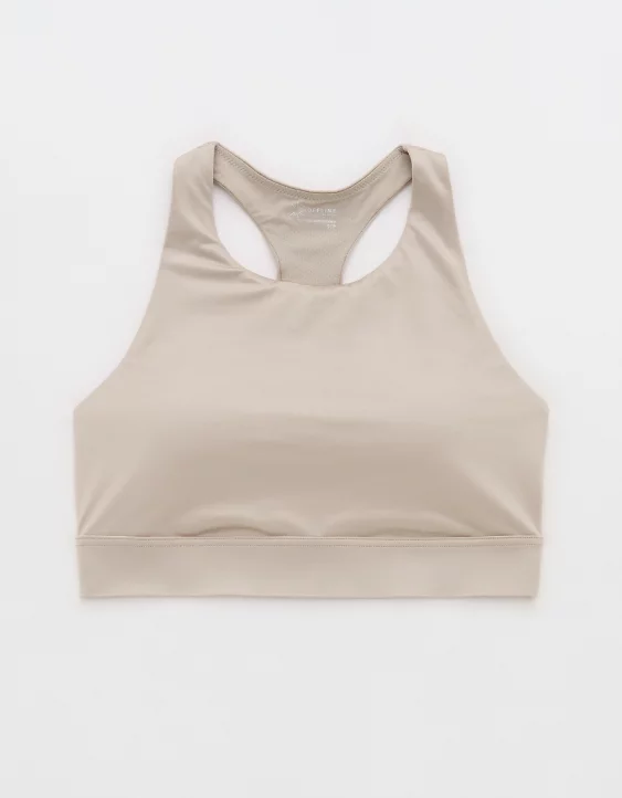 OFFLINE By Aerie Goals Gloss High Neck Sports Bra Stone Harbor