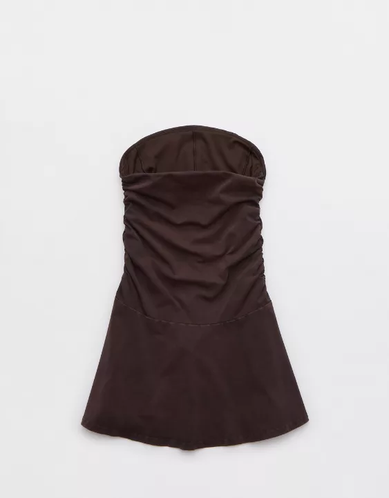 THE RUNDOWN: Designed with ruched details and a fresh drop hem waist. The major plus? A fully lined Real Me bodysuit underneath!