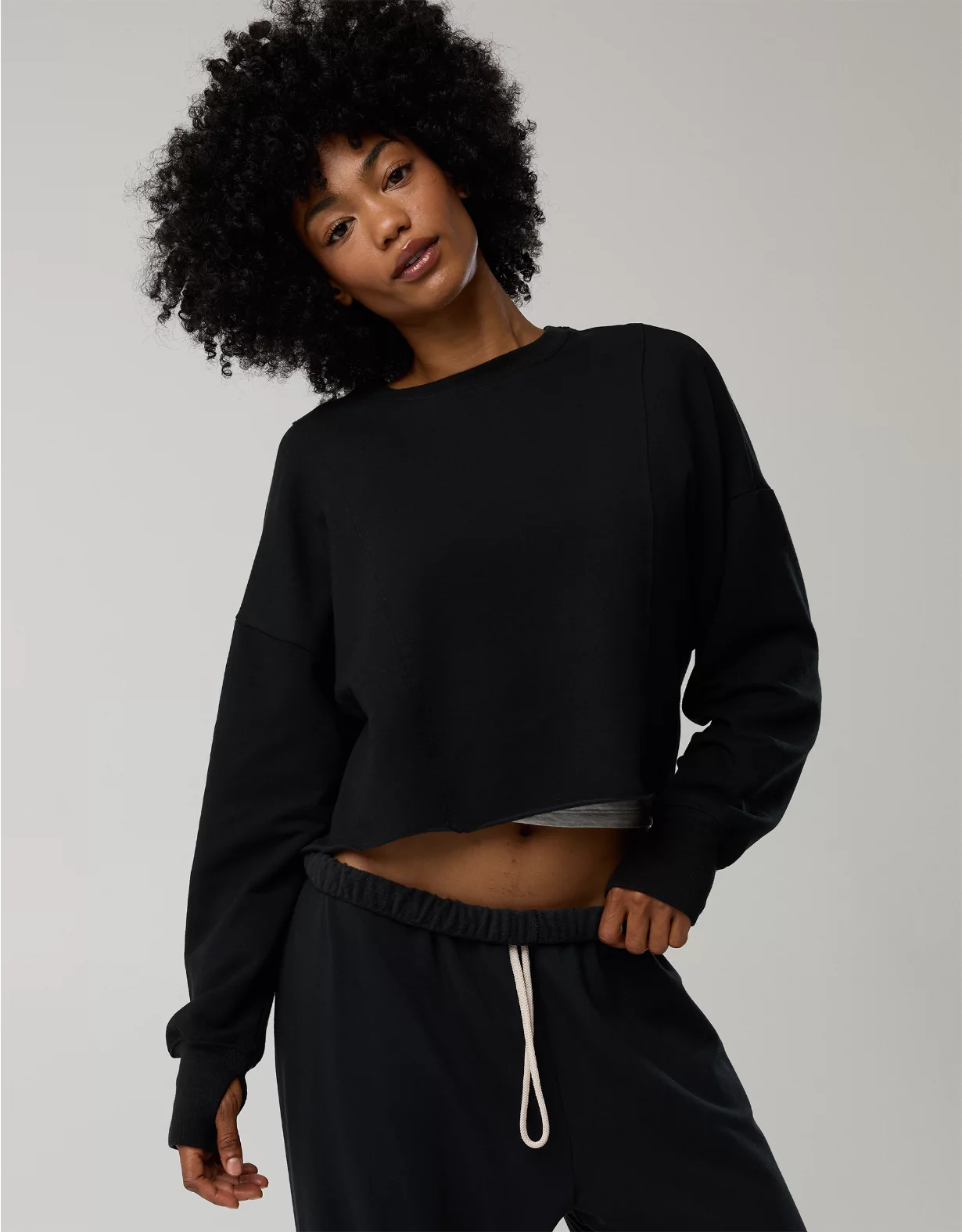 OFFLINE By Aerie OTT Seamed Crewneck Sweatshirt True Black