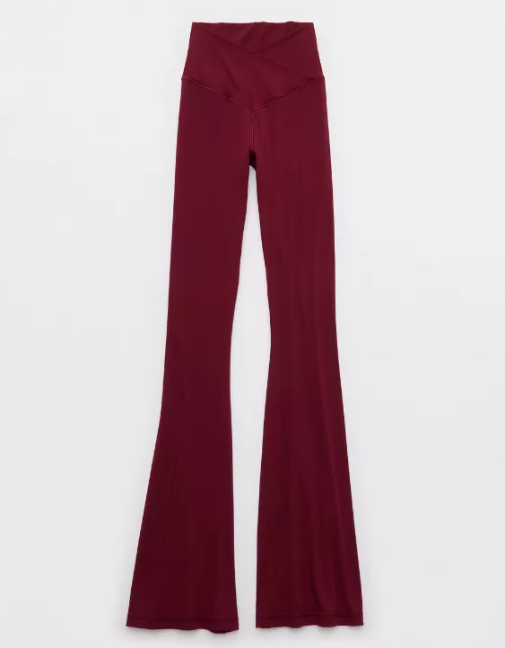 OFFLINE By Aerie Real Me High Waisted Crossover Flare Legging Deep Cherry