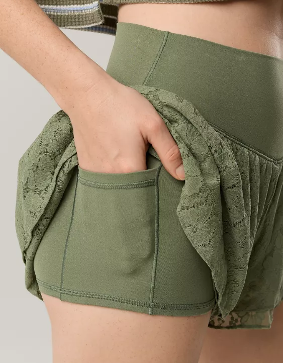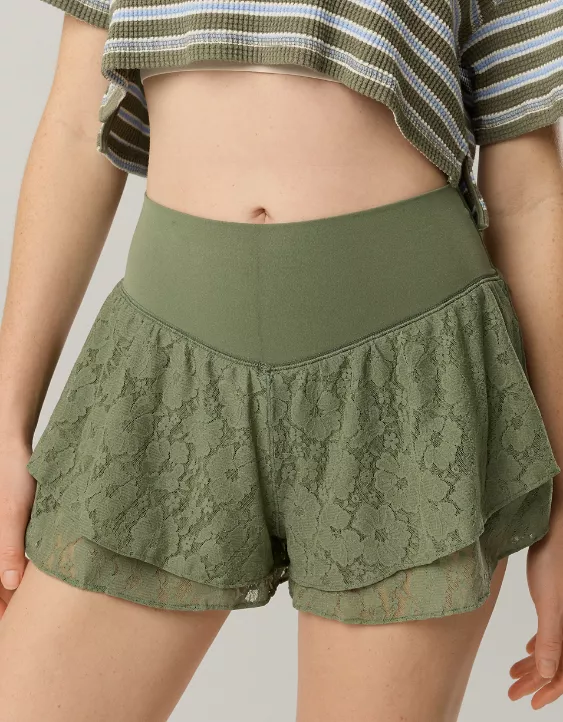 OFFLINE By Aerie Real Me Lace Flowy Short Olive Fun