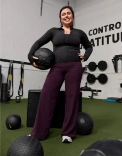 - THE FIT: High waisted. 11″ Leg Opening. Full Length. Fitted waist & hips with a relaxed fit through the legs. (If you love our flare leggings, you’ll love this new trouser fit!)