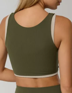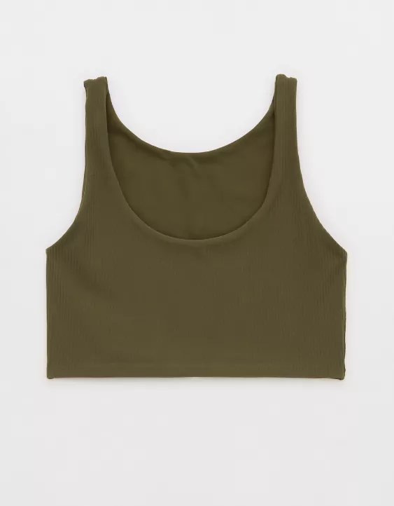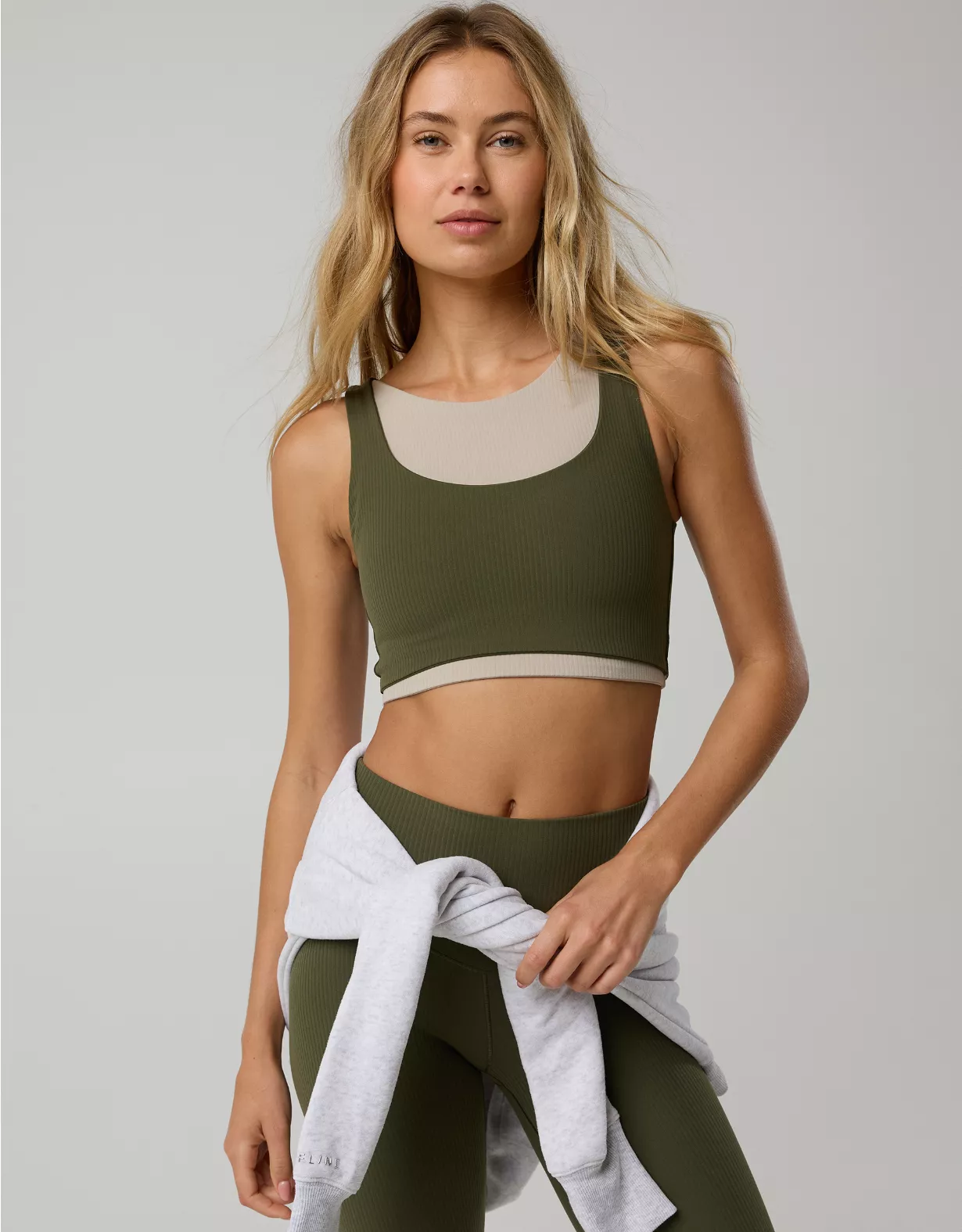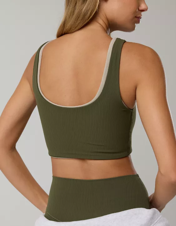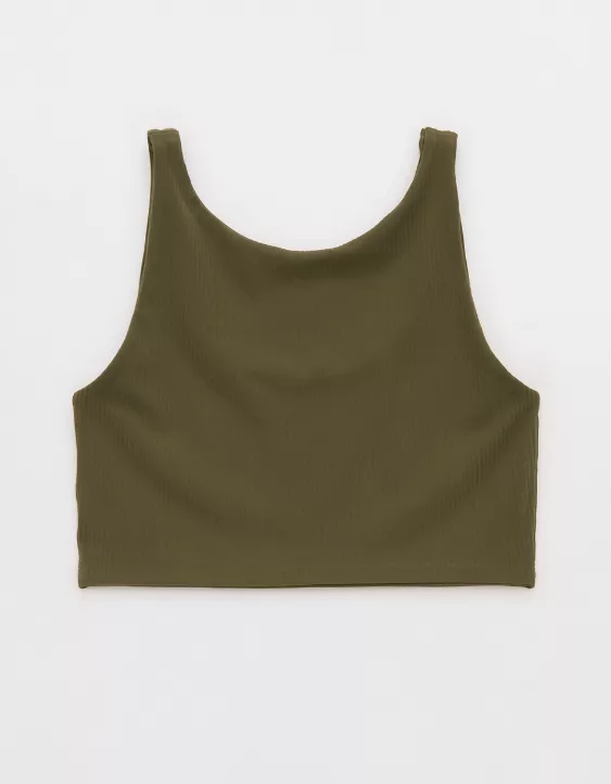 OFFLINE By Aerie Real Me XTRA Rib Switch Up High Neck Sports Bra Military Green