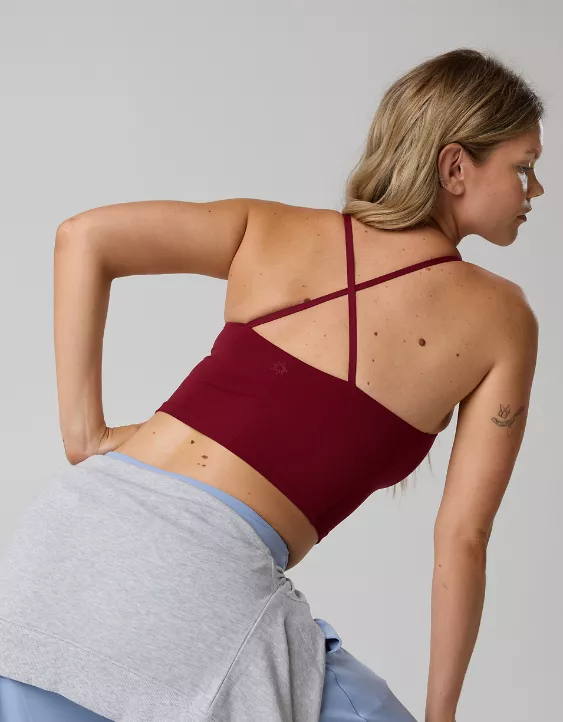 OFFLINE By Aerie Real Me Xtra Strappy Longline Sports Bra Deep Cherry