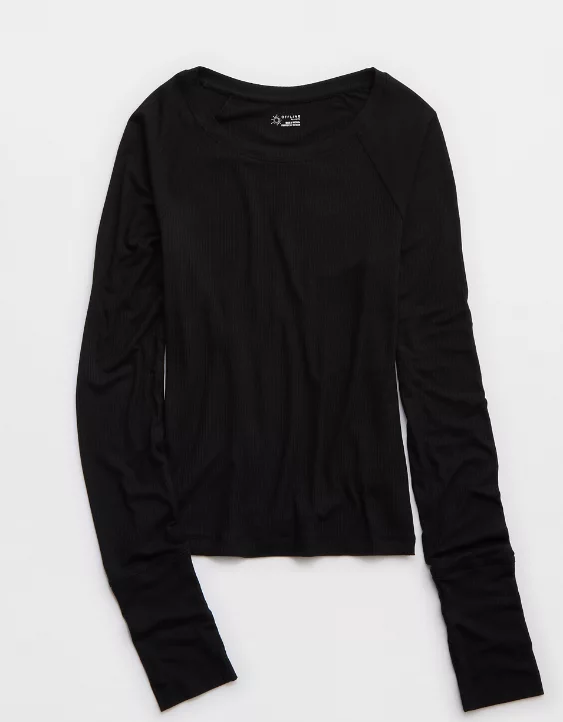 OFFLINE By Aerie Thumbs Up Fitted Ribbed T-Shirt True Black