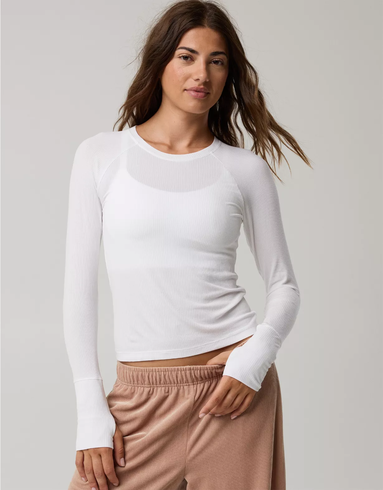 OFFLINE By Aerie Thumbs Up Fitted Ribbed T-Shirt White