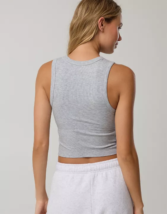 OFFLINE By Aerie Thumbs Up Heavyweight Cropped Tank Top Medium Heather Gray