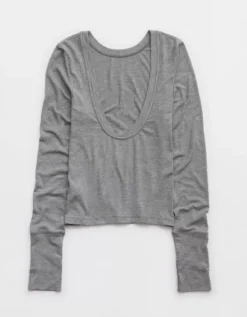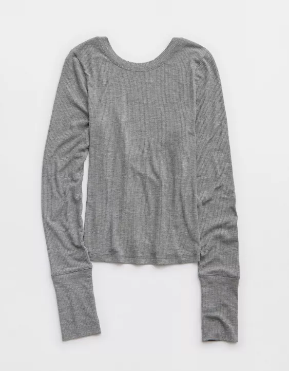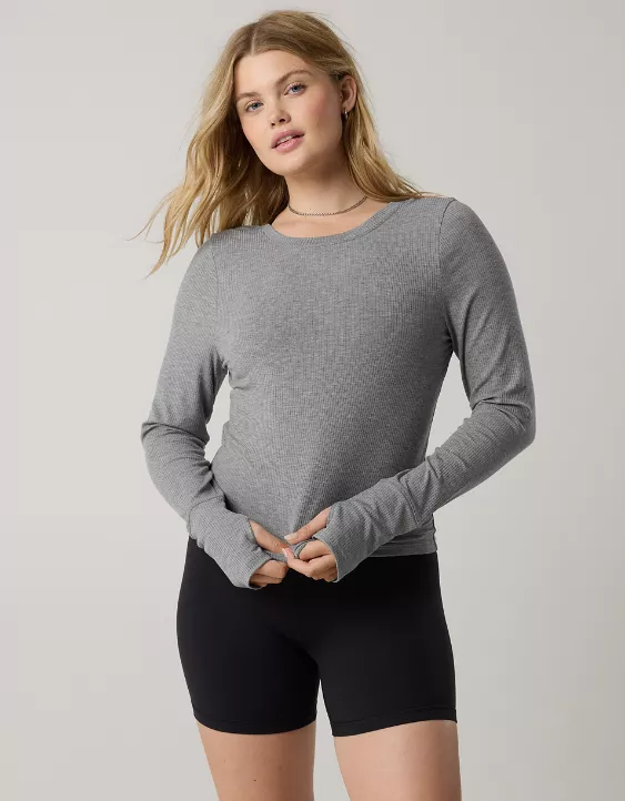 OFFLINE By Aerie Thumbs Up Ribbed Scoop Back T-Shirt Dark Heather Gray