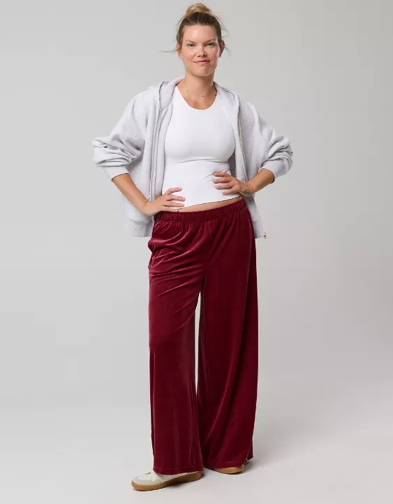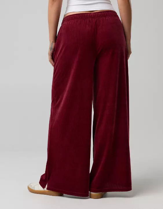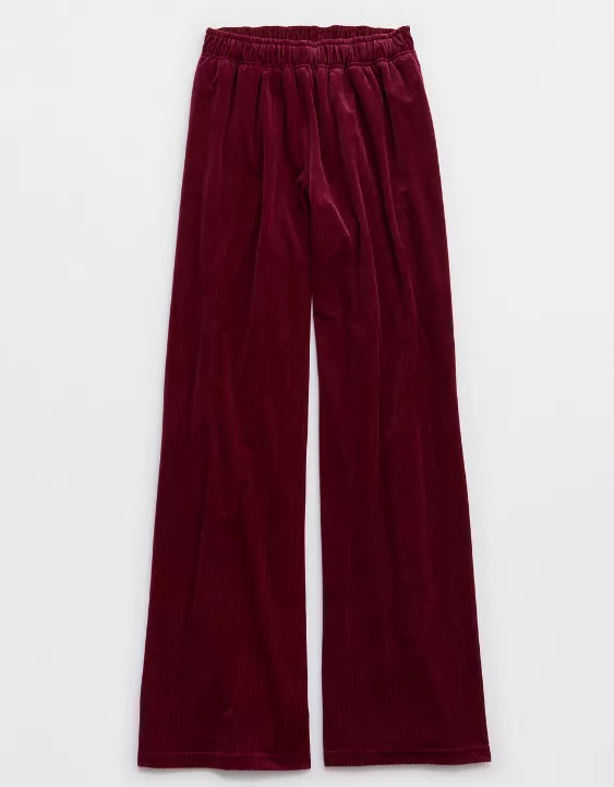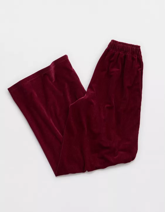 OFFLINE By Aerie Velour Rib Super Wide Leg Pant Deep Cherry