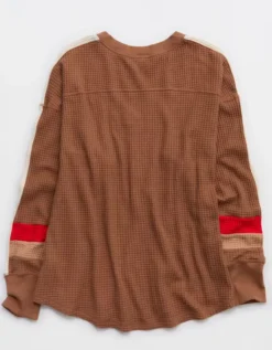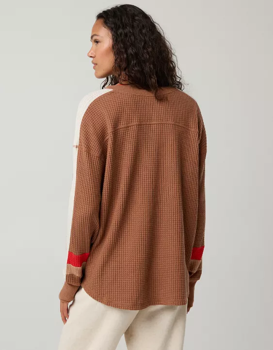 OFFLINE By Aerie Wow! Waffle Notch Neck Long Sleeve T-Shirt Horizon