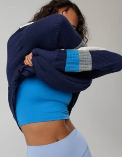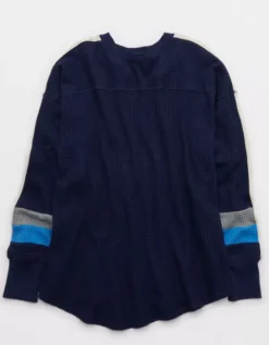 OFFLINE By Aerie Wow! Waffle Notch Neck Long Sleeve T-Shirt Royal Navy