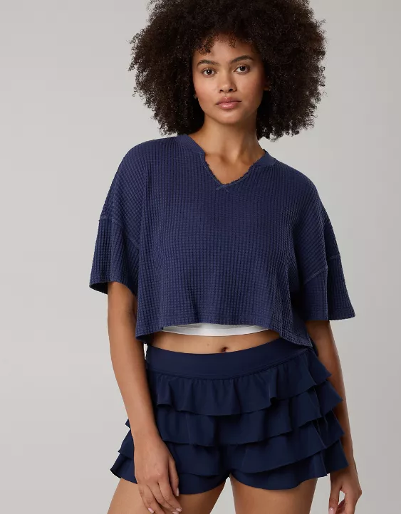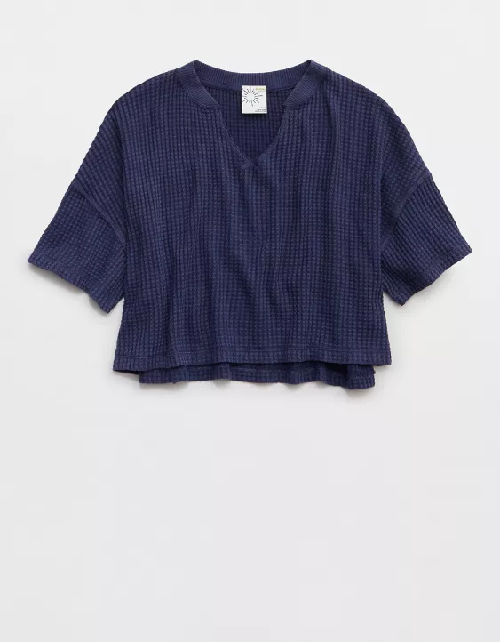 OFFLINE By Aerie Wow! Waffle Notch Neck T-Shirt Royal Navy
