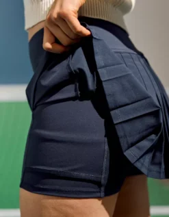 The Lucia Skort is business in the front, party in the back! Made with sweat-wicking stretch fabric and featuring Pickletini’s signature shaper short, this sleek skort with flat front and flirty back pleats, is equal parts sporty, stylish and fun. Tuck away a pickleball in the hidden interior pocket while you store your phone in the exterior side pocket. Made to move, twirl and turn heads.